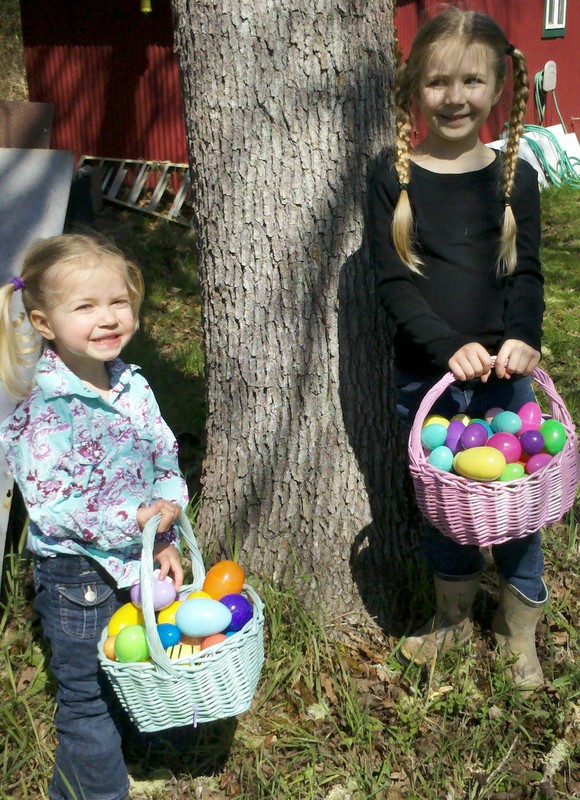 On our way to the neighbors' for the first Egg Hunt of the day.